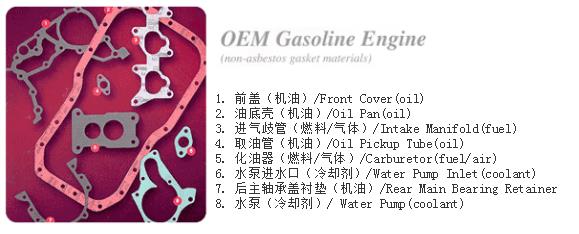 在OEM配套的汽油機(jī)市場(chǎng)中,正確選擇墊片材料選喲對(duì)材料的設(shè)計(jì)性能和應(yīng)用的部件結(jié)構(gòu)有充分的了解。最重要的是材料的性能一定要滿足甚至超過(guò)發(fā)動(dòng)機(jī)的應(yīng)用要求。因特費(fèi)斯墊片公司在為用戶選擇和推薦材料產(chǎn)品時(shí),我們不僅對(duì)選擇的部件作全面詳盡的分析,并且對(duì)選擇的材料進(jìn)行仿真性的測(cè)試,為保證材料產(chǎn)品應(yīng)用的可靠性。