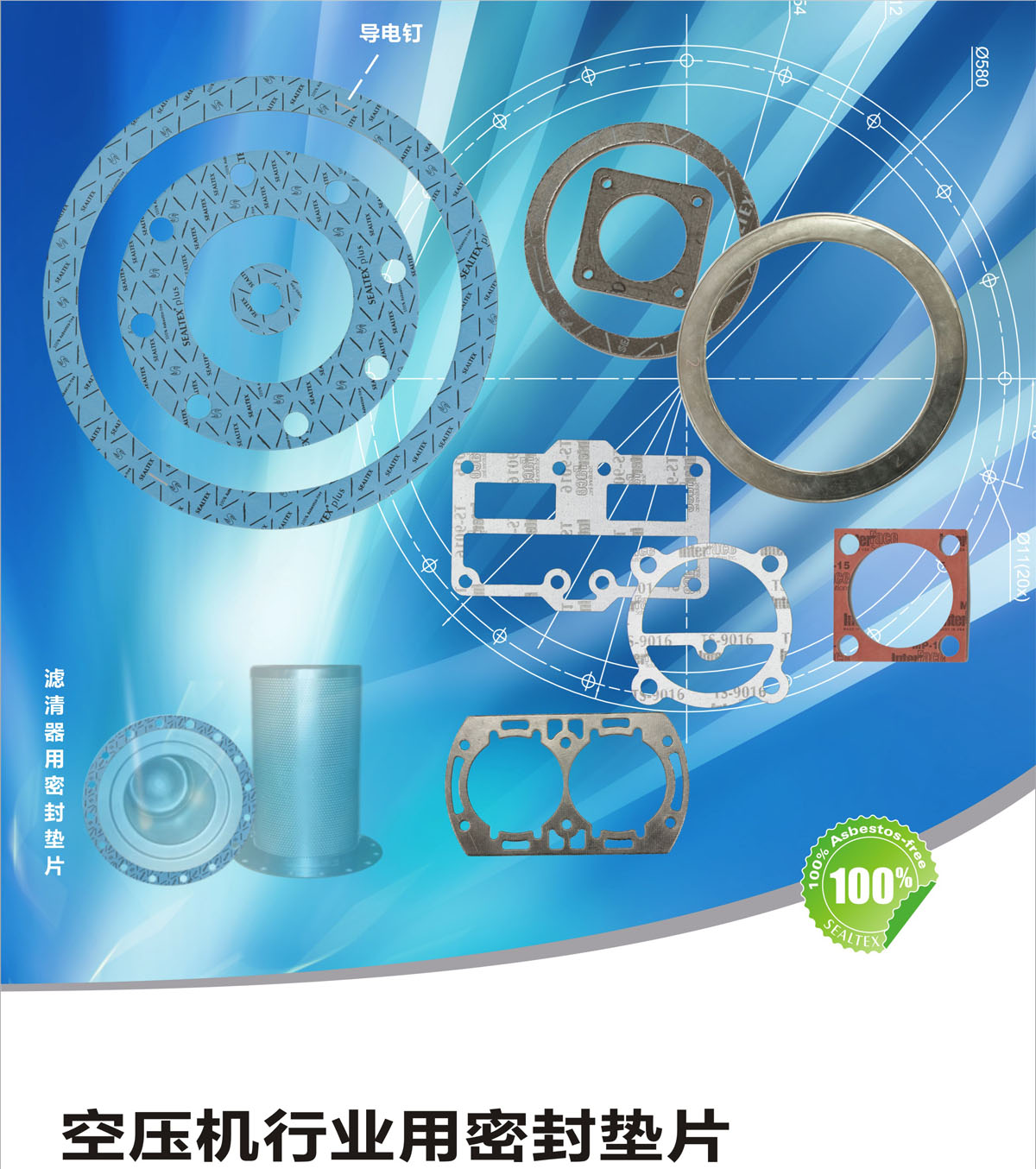 可應用于活塞機、螺桿機等各類壓縮機中的空氣濾清器、機頭、閥板、曲軸箱、軸承蓋、進排氣口、油漆桶、油路等部分的密封。